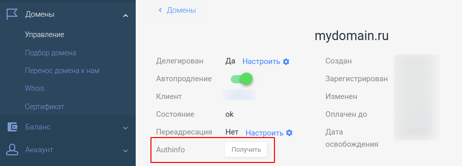Шаг 1. Подготовка к переносу и получение Authinfo-кода