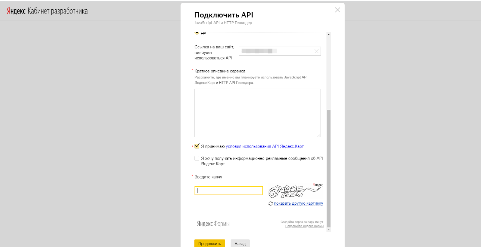 3. Заполните специальную анкету Яндекса.