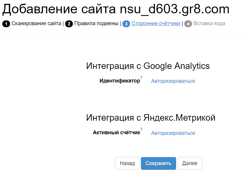 4. Подключите счетчики аналитики Google Analytics и Яндекс.Метрика, если это нужно.