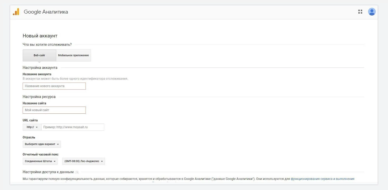 3. На новой странице выберите, что вы хотите отслеживать и придумайте название аккаунта.