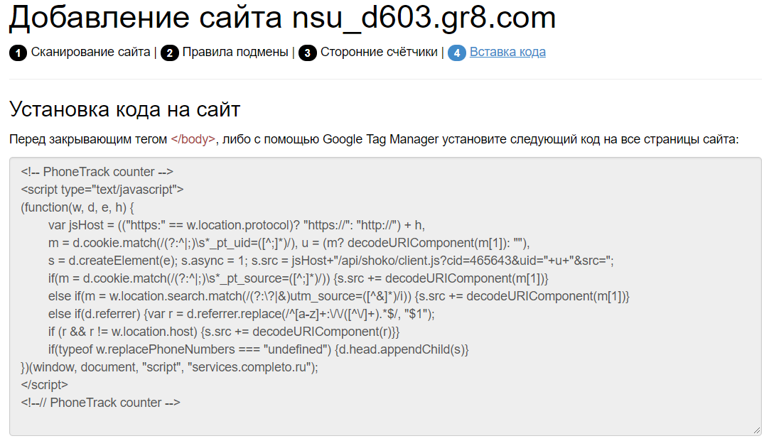 Обратите внимание: в коде есть уникальный ID. Он создается специально под адрес вашего ресурса. Не устанавливайте этот код на другой сайт, он не будет работать. Создайте новый, если необходимо.