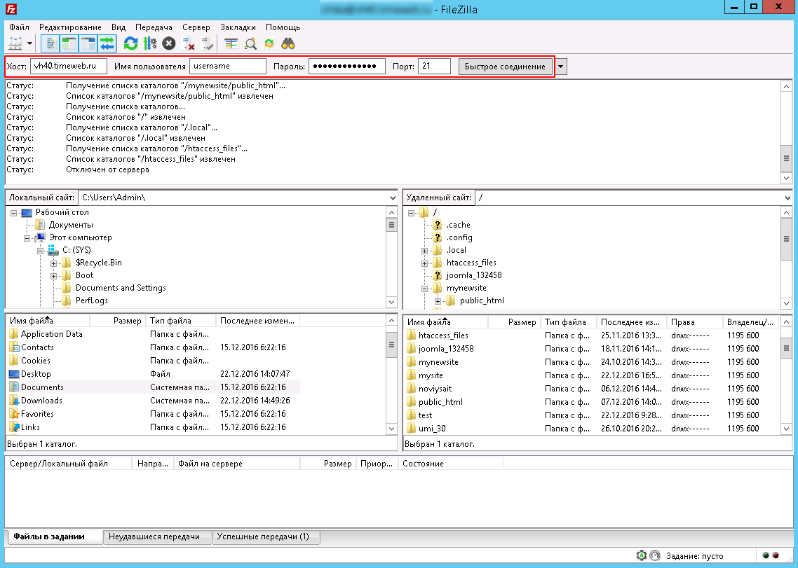 FileZilla — простой в использовании бесплатный FTP-клиент, предназначенный для загрузки и скачивания файлов с FTP-серверов. С помощью данного инструмента вы сможете разместить файлы вашего сайта на сервере Timeweb, подключившись по протоколу FTP или SFTP. FileZilla может использоваться в Microsoft Windows, Mac OS X, FreeBSD и Linux.