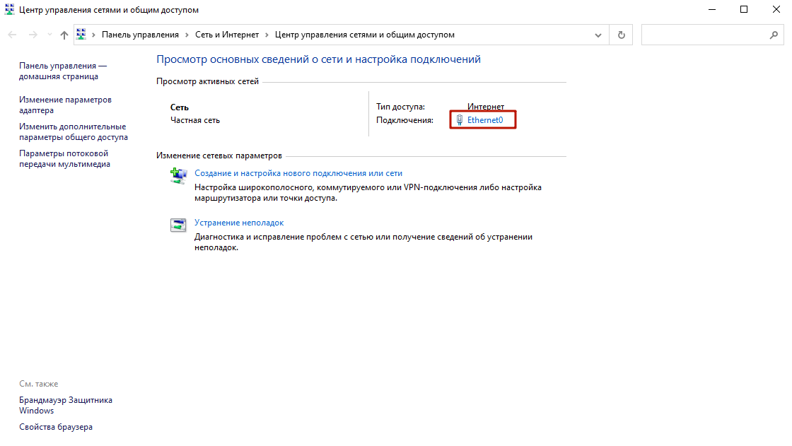 - Откроется окно настроек. В разделе «Просмотр основных сведений о сети и настройка подключений» кликните на сеть в пункте «Подключения».