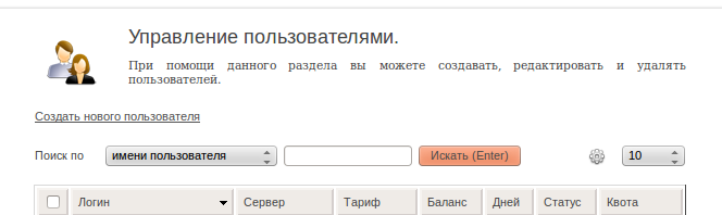 Раздел «Управление пользователями» позволяет добавить нового пользователя или найти уже существующего.