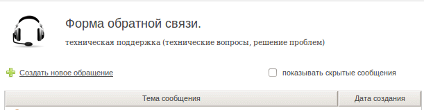 Раздел «Форма обратной связи» позволяет создать запрос в службу поддержки или ознакомиться с уже созданными запросами.