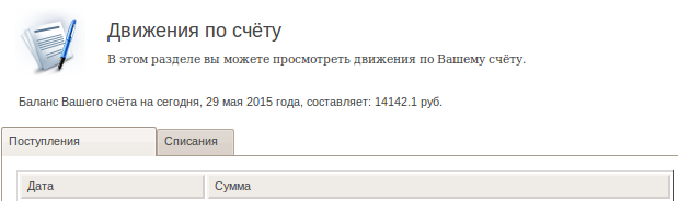 Раздел «Движения по счету» отражает все операции поступления и списания, размещенные на отдельных вкладках.