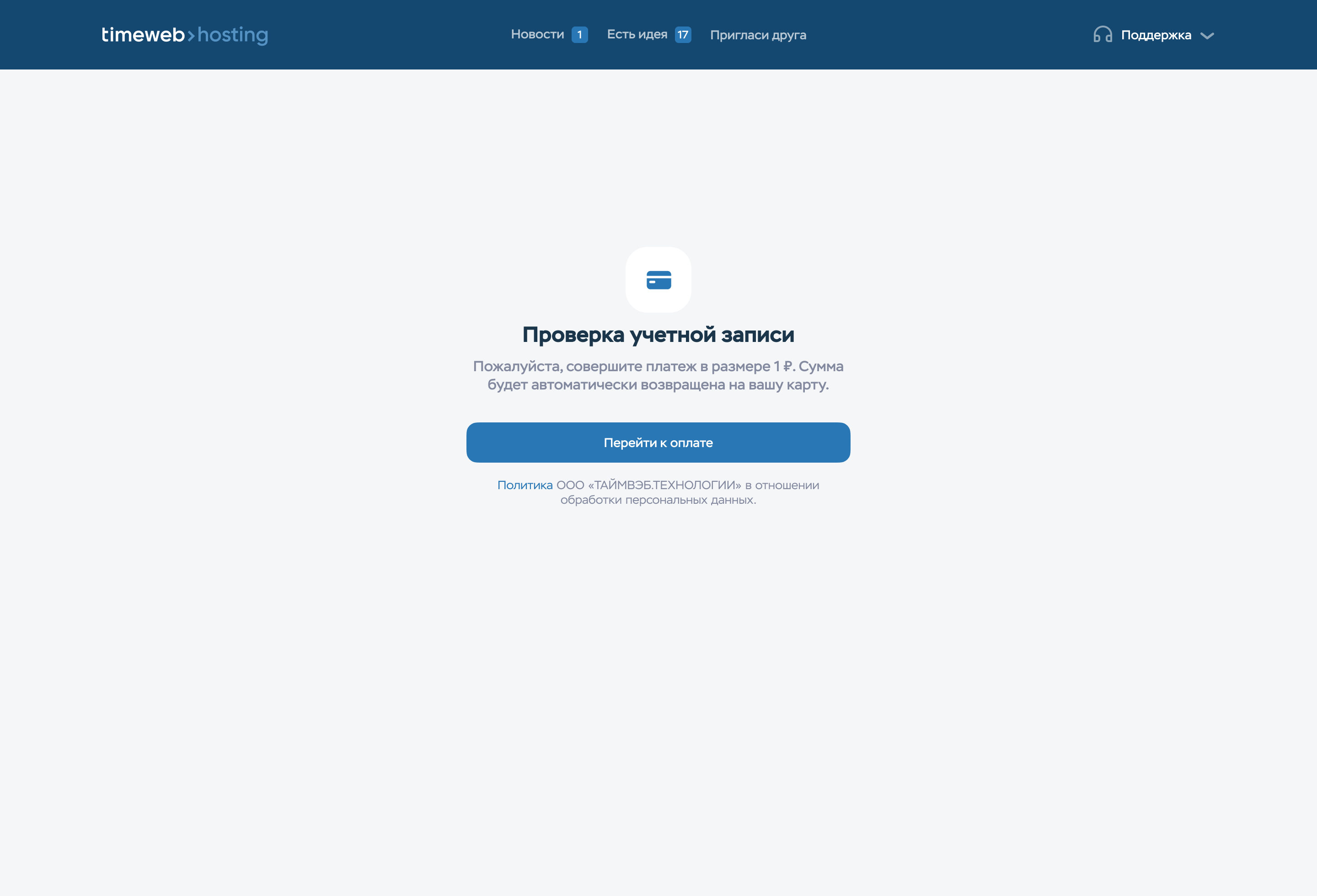 В редких случаях при регистрации аккаунта система может запросить верификацию. В этом случае при входе в панель управления будет отображено уведомление о проверке учетной записи.