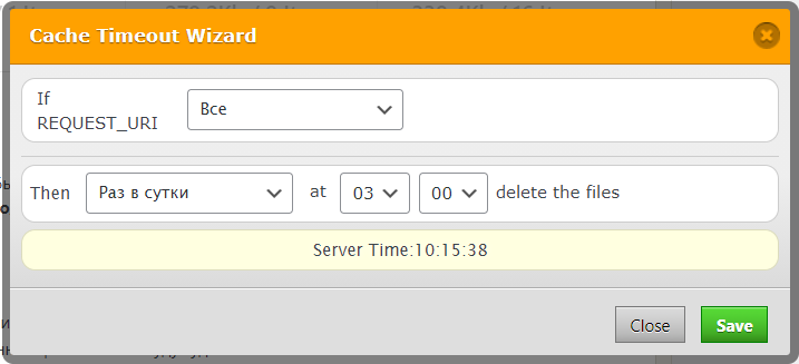 На вкладке «Очистка кэша» рекомендуем включить периодический сброс кэша, чтобы не переполнять пространство аккаунта кэшированными данными. Для этого кликните на Add New Rule и в открывшемся окне укажите нужные параметры. В поле «If REQUEST_URI» выберите «Все», а ниже — подходящий вам интервал удаления данных и время выполнения действия. Оптимальный вариант — удаление кэша раз в сутки / раз в три дня. Например: