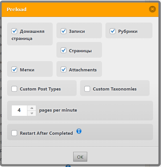 Файлы кэшируются после того, как пользователь впервые посещает страницу, что означает, что для данного пользователя загрузка займет больше времени, так как кэш пока отсутствует. Включение опции «Предпоготовка» запускает периодическое создание кэша основных элементов, что значительно ускоряет время будущих загрузок.