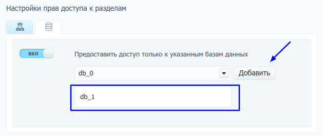 Можно ограничить доступ конкретными базами. Для этого выберите базу из списка и нажмите «Добавить». Добавленные базы будут перечислены под выпадающим списком.