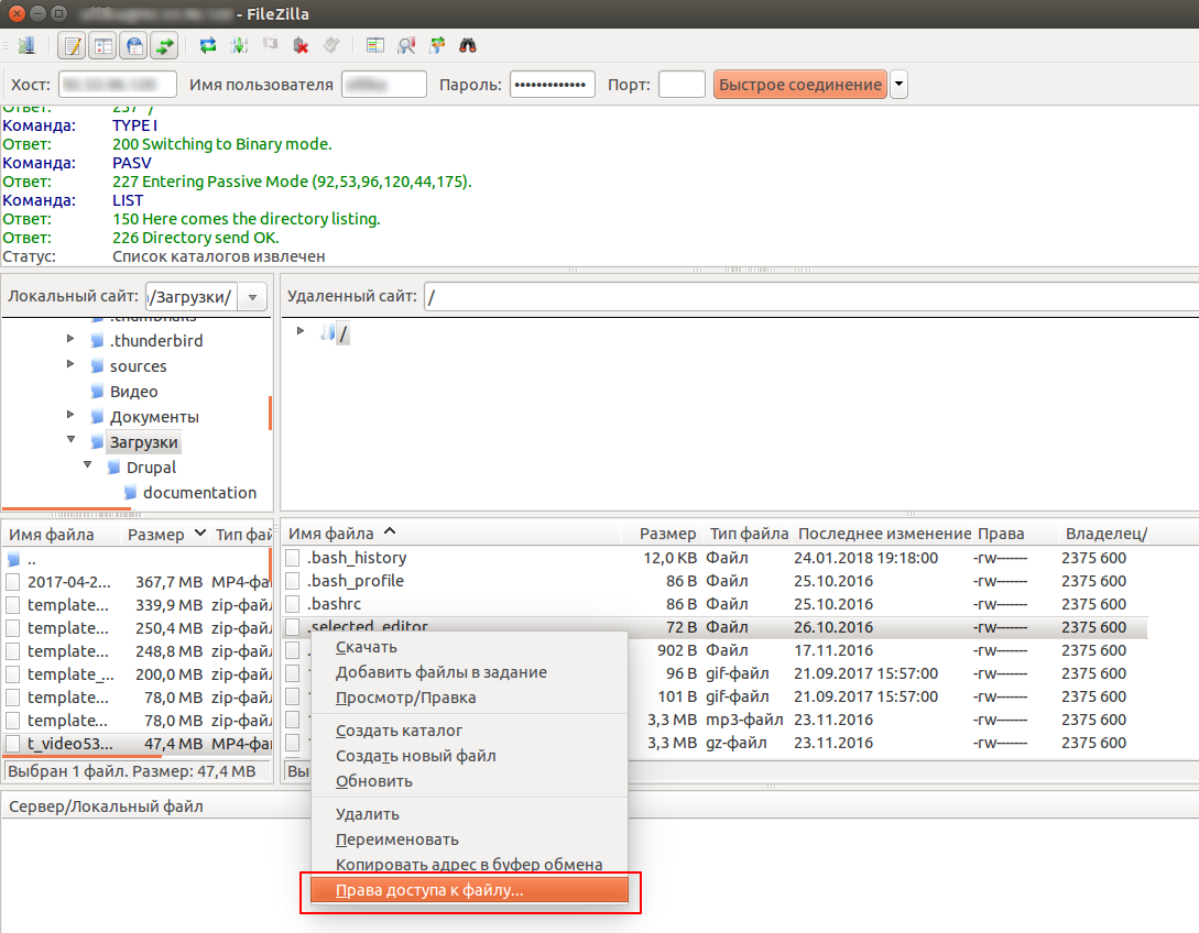 Задавать и изменять права в FTP-клиенте очень просто.