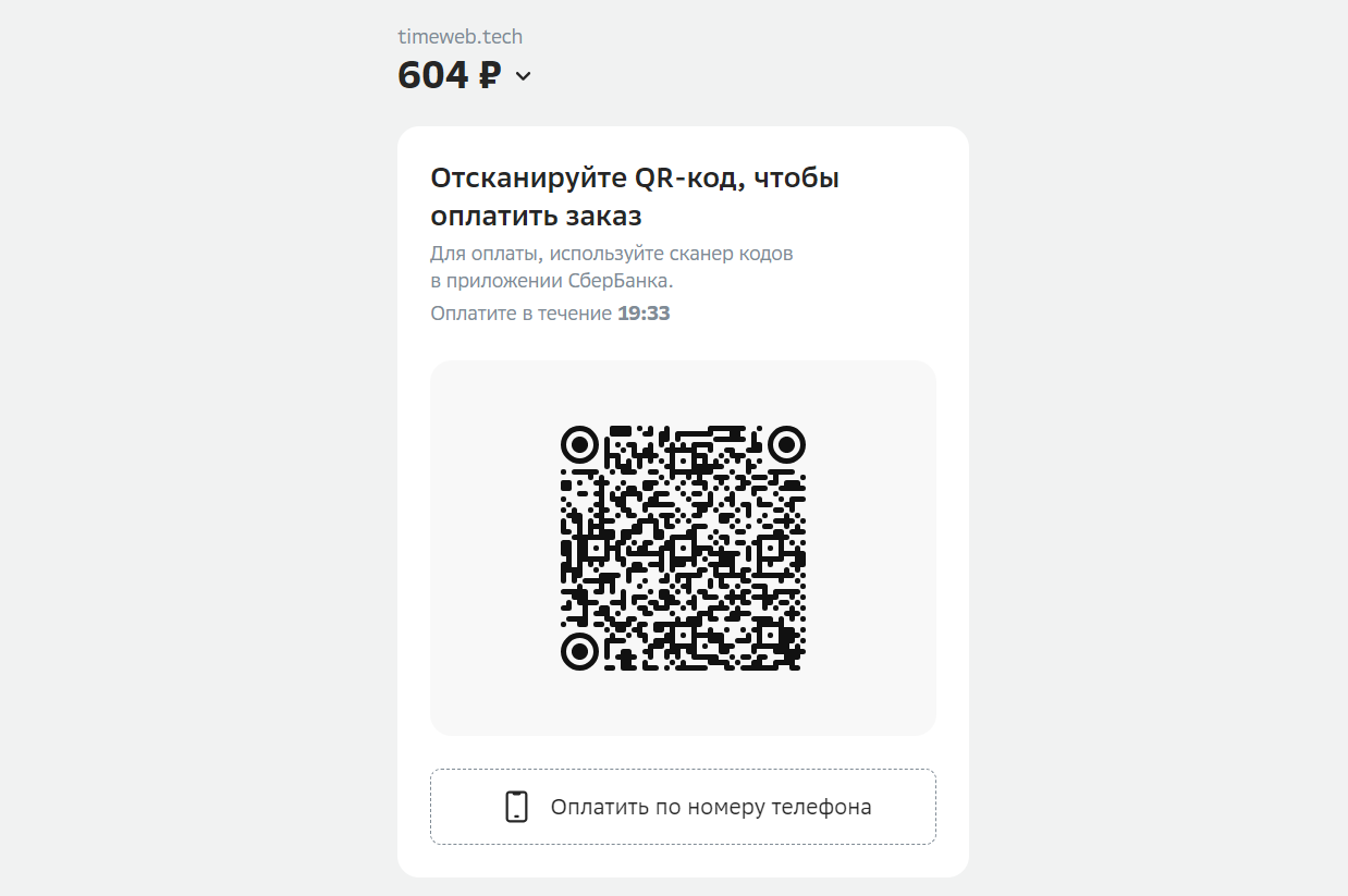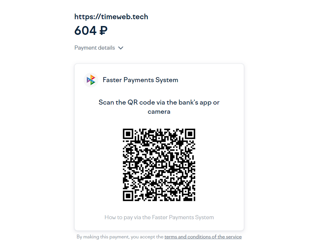 Еще один простой и безопасный способ онлайн-оплаты хостинга — СБП. Чтобы воспользоваться им: