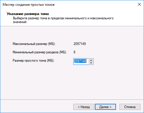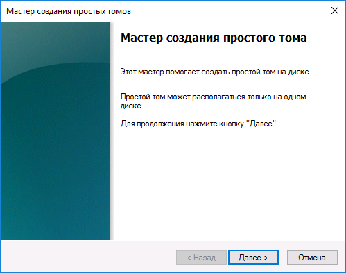 3.5. После открытия «Мастера создания простого тома» нажмите кнопку «Далее».