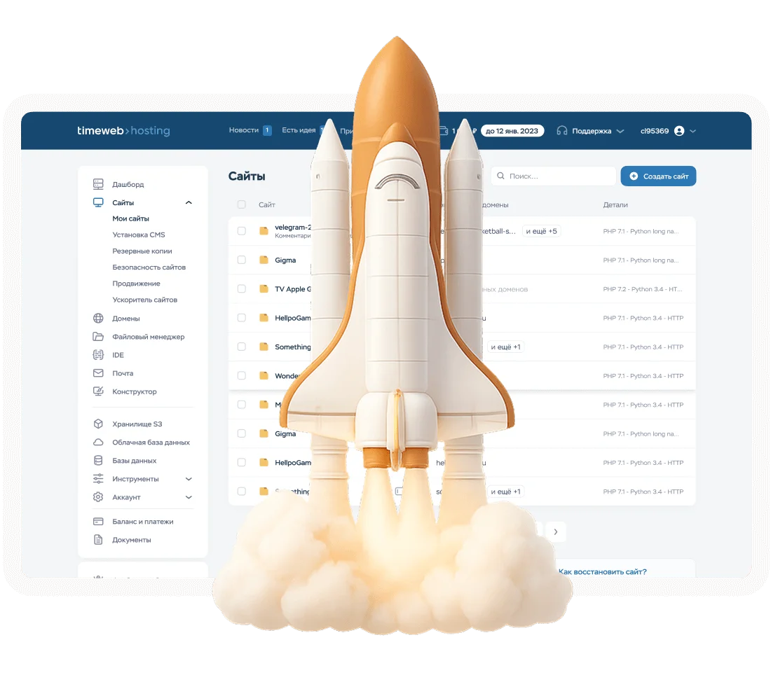 В панели управления выберите раздел «Сайты» и создайте сайт